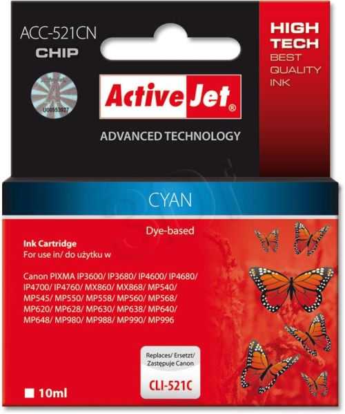 Canon CLI521C ACJ ACC-521CN Cyan (10ml) CHIP zamie
