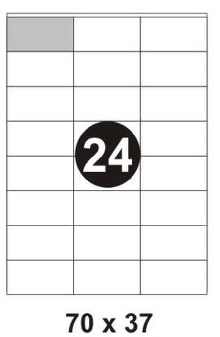 EtykietySamoprzylepne Format: A4 Kolor: biały Szerokość: 70 mm Długość: 37 mm Ilośćetykietnaarkuszu: 24 Pakowanie: opakowanie = 100 arkuszy; referencyjne: