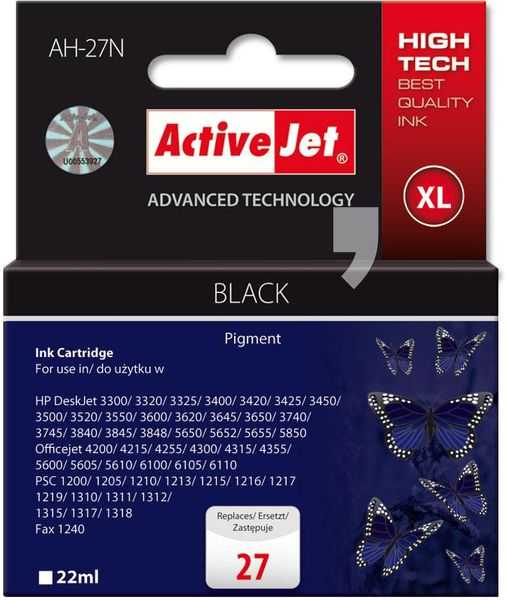 ActiveJet AH-727N zastępuje oryginalny tusz HP 27 w