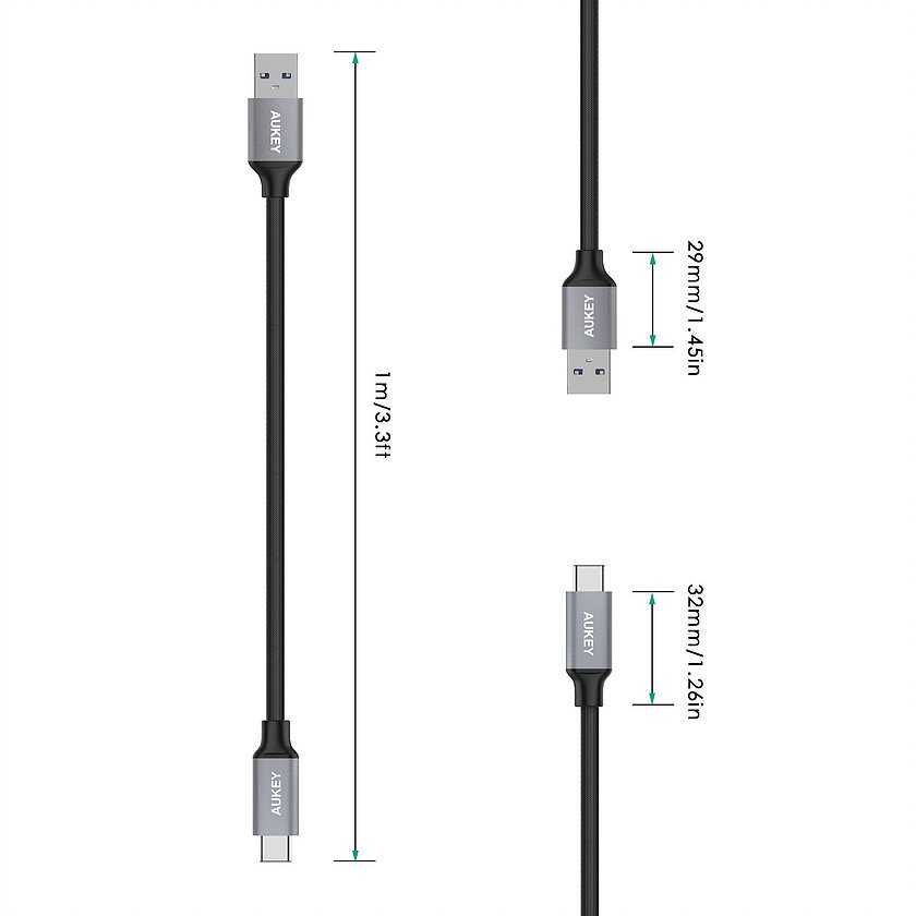 Kabel USB 3.0 AM - CM 1m Aukey typ C czarny