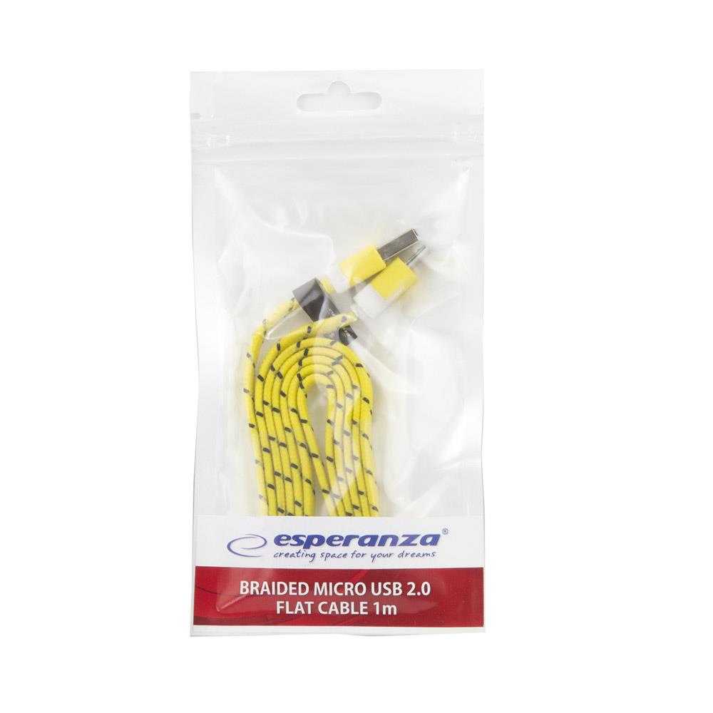Kabel USB A Micro-B 1m płaski oplot Esperanza żółt