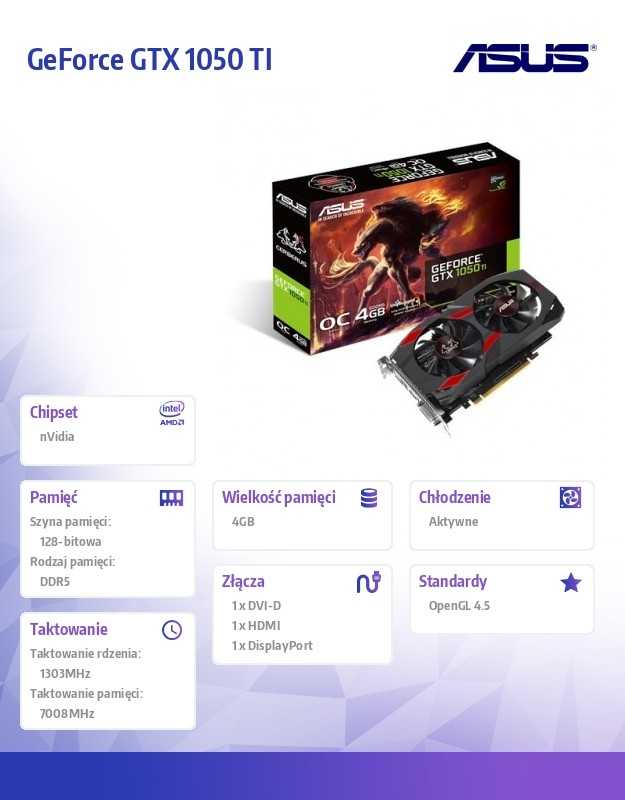 988,90 zł Karta GF PCI-E GTX1050TiOC 4GB DDR5 128bit Asus