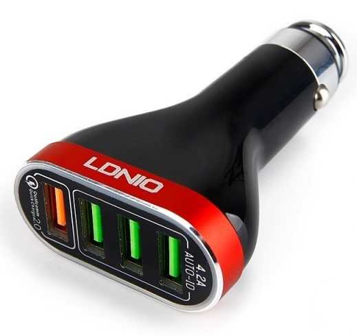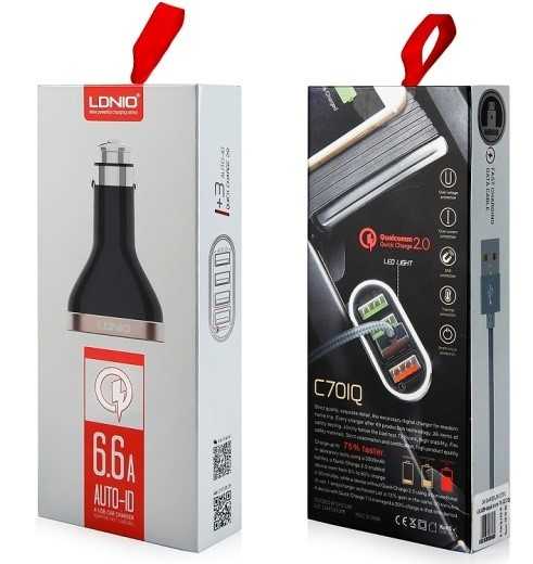 Ładowarka samochodowa 6.6A LDNIO C710 4XUSB + Quick Char+kabel
