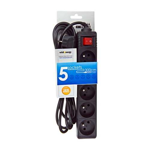 Liczba gniazd typu E  5 Długość przewodu  1.5 mm Wtyczka  Europejska Zabezpieczenia / filtry  Przeciwprzepięciowe Włącznik  Tak Kolor  Czarny Wymiary 64 x 345 x 50 mm Waga  577 g