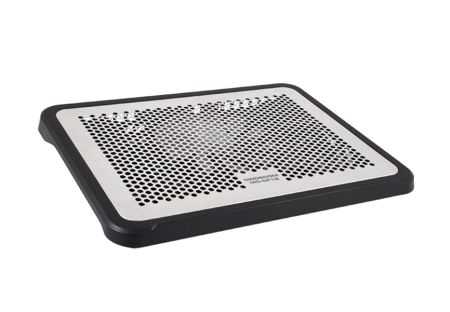 Specjalnie zaprojektowana aluminiowa powierzchnia z przepuszczającymi powietrze otworami zapewnia doskonałe chłodzenie każdego komputera przenośnego o przekątnej ekranu 16”.