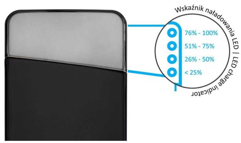 Informacje dodatkowe  Ładowanie dwóch urządzeń jednocześnie > z kabla micro USB (1.0A) + portu USB (2.1A). Wskaźnik naładowania baterii. Kompaktowy rozmiar.