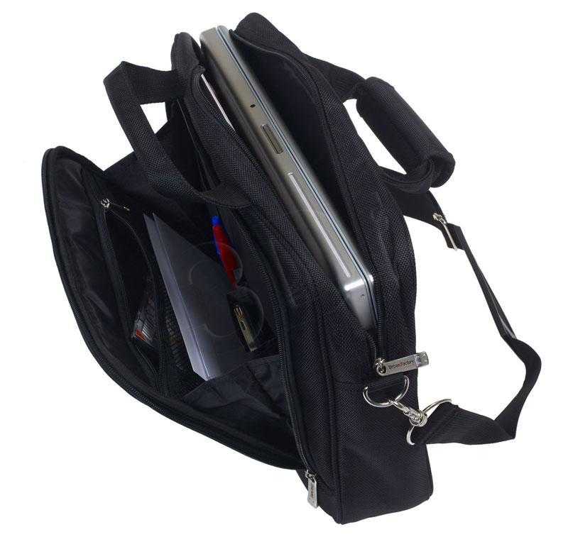 Kompatybilny z maksymalnym rozmiarem ekranu:  39,6 cm (15.6") Typ obudowy:  Aktówka Materiały:  Nylon Kolor produktu:  Czarny Kolor powierzchni:  Jednolity Zintegrowana komora (y):  Tak Ilość ...