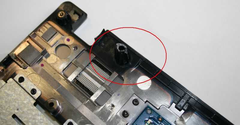 uszkodzone gniazdo mocujące z prawej strony zaznaczone na zdjęciach