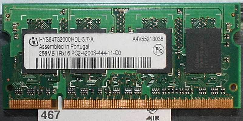 Pamięć SO-Dimm DDR2 256 MB 533MHz. Pochodzi z demontażu, sprawna.