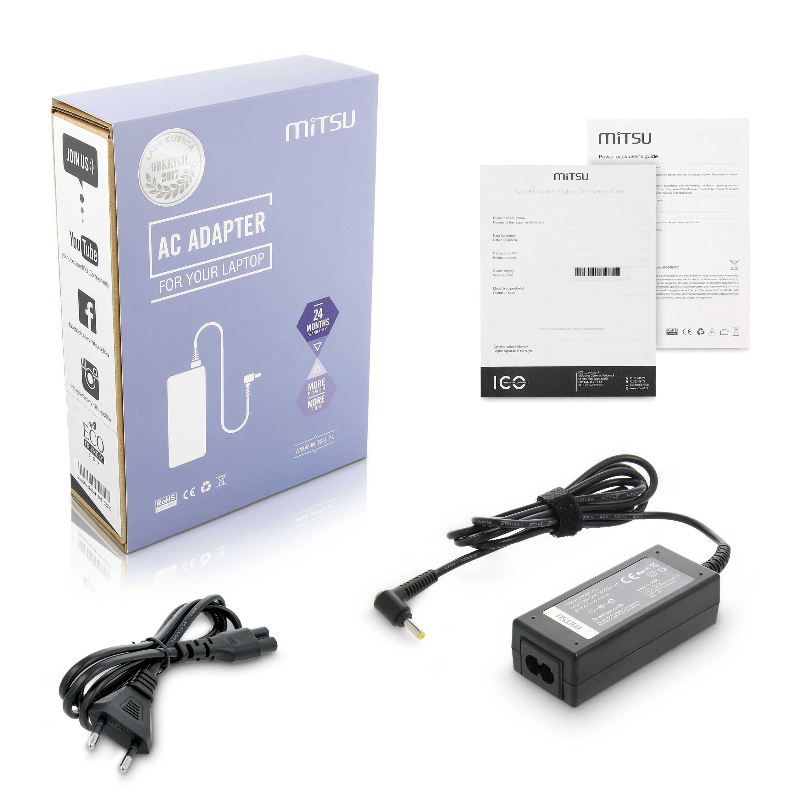 MITSU ZASILACZ 19V 2.37A (5.5X1.7) ACER |
